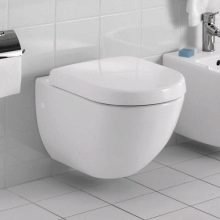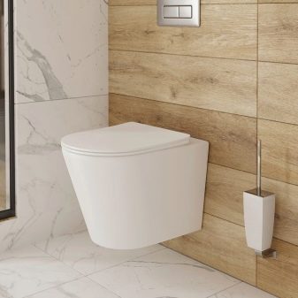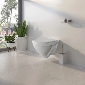 - Липса на крак. Висящата купа прави почистването на тоалетната по -лесно и по -удобно, защото вече не се налага да усуквате, за да почистите пространството зад тоалетната. В случай на ново изобретение е необходимо само да избършете пода под купата – благодарение на конструктивните характеристики, това е доста лесно да се направи..