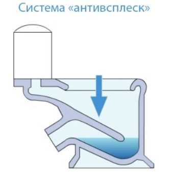 Механизъм, който свежда до минимум пръските по време на промиването. Системата против пръски предотвратява навлизането на вода в капака, стените или човешкото тяло.