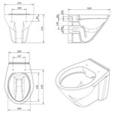 - Компактен съкратен механизъм. Късата тоалетна чиния, чиято дължина варира от 500 до 540 мм и ширината от 300 до 360 мм, се монтира в малки тоалетни. Сред компактните модели има малка ъглова тоалетна, която се възползва максимално от малко пространство..