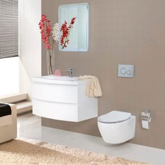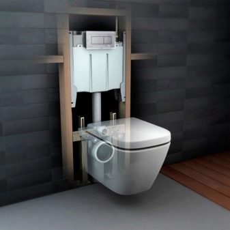 - Минимализъм. Когато инсталирате това водопроводно устройство, повечето канализационни тръби и части от системата са скрити зад фалшива стена. Тази технология ви позволява да премахнете всички ненужни от очите и да направите стаята възможно най -удобна и естетична..