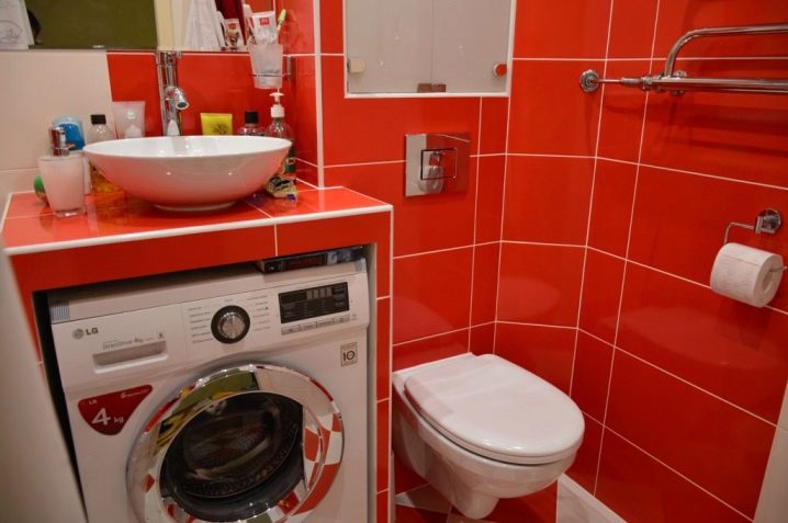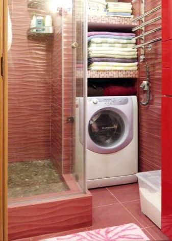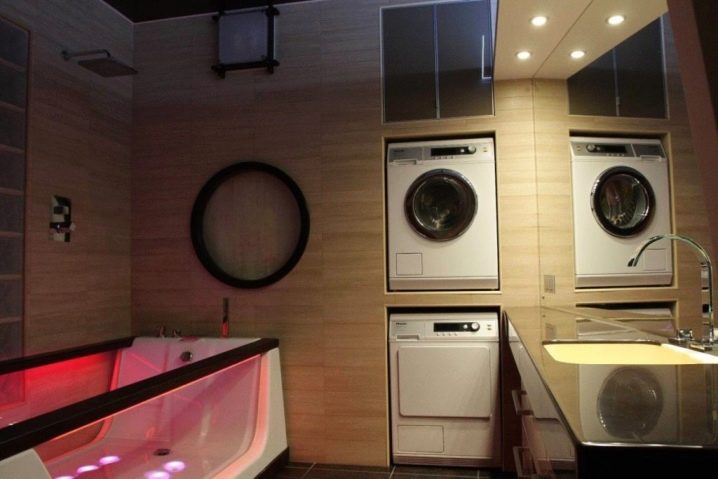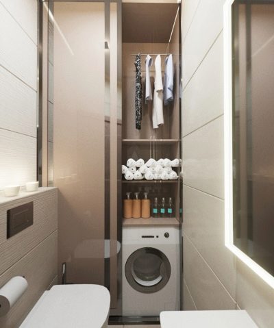 Уредите могат да се монтират под плота, като се определи място за него в близост до мивката и рафтовете за спално бельо. Ако банята има килер с достатъчна дълбочина и височина, машината може да бъде скрита там. Въз основа на вида и надеждността на конструкцията, тя може да бъде изградена не само надолу, но и над рафтовете..