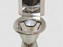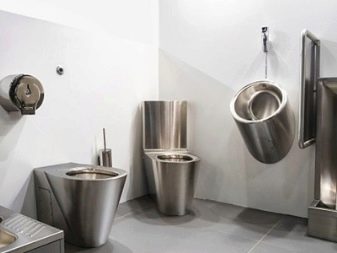 - Тоалетни чинии неръждаема стомана – някои от най -скъпите и редки опции. Най -често те са оборудвани с бани, които са декорирани в техно стил. Разбира се, такива продукти са много надеждни и имат дълъг експлоатационен живот..