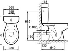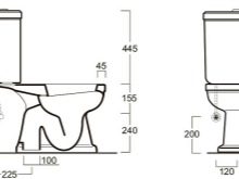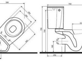 - Компактът се предлага с включено казанче за промиване, но отделно. При монтажа резервоарът първо се монтира върху купа, а след това се закрепва към пода с помощта на скоби. Такъв модел е удобен за транспортиране и в случай на повреда е достатъчно да се замени отделна част от тоалетната.