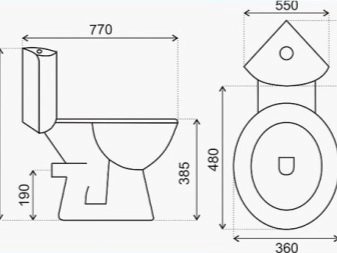 Тоалетните, които са предназначени за инсталиране в ъгъл, имат компактен размер. Разбира се, има и стандартни опции, които не са много по -малки от традиционните модели. Ширината на такива продукти варира от 35 до 38 см, дължината е от 73 до 78 см, а височината е от 37 до 43 см. Някои видове дори са оборудвани с регулиране на височината в рамките на 40 мм. Поради по -голямата дължина тоалетната става по -добра в ъгъл и в същото време изглежда по -компактна. Обикновено ъгловите тоалетни се различават по параметри и вид дренажни контейнери.. Най -често размерите зависят от конкретния производител..