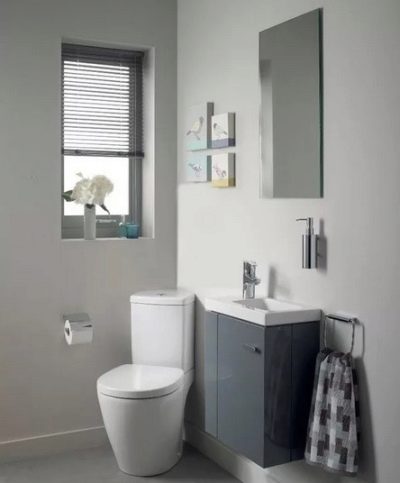 - Ъгловите модели тоалетни чинии са чудесни за бани с всеки интериор. Например, в баня в минималистичен стил, си струва да изберете опция в един цвят, с ясни форми и малък размер. За да създадете уютна атмосфера, благоприятстваща релаксация, изберете водопровод в топли цветове (прасковен или зелен).