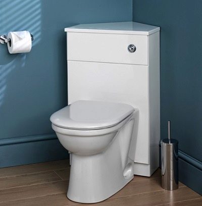 Интересна особеност на ъгловата тоалетна е, че няма нужда да инсталирате казанчето директно над самия водопровод. Контейнерът за отпадъци може да се монтира на всяко подходящо място, например под тавана.