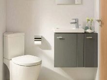 - Френски производител Яков Делафон произвежда разнообразни ъглови модели, сред които специално място заемат подовите с комбинирано казанче. Например характеристиките на популярната серия санитарен фаянс Odeon Up включват икономията на вода при източване почти 2 пъти. Елегантният продукт е лесен за грижи благодарение на специалното си покритие и свалящ се капак. В същото време той е безшумен, зачервяването се извършва в кръг, има функция против пръски, а седалката се спуска плавно. Сред минусите потребителите отбелязват падащия бутон, когато резервоарът е празен.