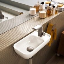 - Дизайн. Не забравяйте да обърнете дължимото внимание на външната страна на малката мивка. Тя трябва хармонично да се впише в съществуващата среда, да се припокрива в изпълнение с тоалетната. Не трябва да купувате водопровод, който ще се откроява рязко на общия фон, въвеждайки дисхармония.