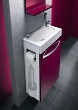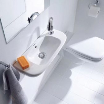 Мястото на инсталиране на малка мивка в банята е до голяма степен зависи от оформлението му. Така че, ако правоъгълна структура е характерна за една стая, тогава ъгловият водопровод, който може да бъде поставен до тоалетната, ще пасне идеално тук..