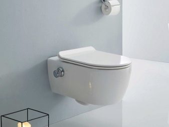 - Преустановено. Ако искате да освежите интериора и да внесете свеж и модерен щрих в него, има смисъл да разгледате по-отблизо окачените на стената тоалетни чинии, комбинирани с биде. Те изглеждат оригинални и стилни, не изискват много свободно пространство и значително улесняват процеса на почистване на стаята, защото пространството под тях ще остане свободно. Вярно е, че окачените хибридни устройства са трудни за монтиране – само здрави, здрави стени, които могат да ги издържат, са подходящи за монтажа им. В случай на проблеми и неизправности, ремонтът на такъв водопровод води до много проблеми и неудобства..
