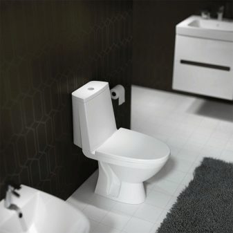 - Frisk. В тази серия има висококачествени подови тоалетни чинии от компактна модификация. Продуктите имат хоризонтални, вертикални и коси входове. Те имат минималистичен, но изчистен дизайн. Всички тоалетни от гамата Frisk са класически бели.