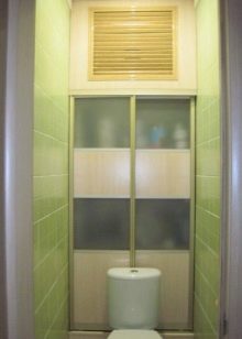 - Моделът с полупрозрачни вложки визуално осветява пространството зад тоалетната. При тесни условия беше избран единственият възможен плъзгащ се начин за отваряне на крилото.
