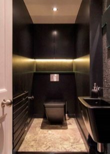 Мога купувайте готови мебели и ги вградете в ниша, но е изключително трудно да се намери продукт с идеалния размер (и дори да се постави зад тоалетната). Следователно, пространството се запълва самостоятелно с рафтове или те правят шкаф по поръчка, като вземат предвид всеки сантиметър от използваемата площ..