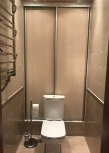 - Моделът с полупрозрачни вложки визуално осветява пространството зад тоалетната. При тесни условия беше избран единственият възможен плъзгащ се начин за отваряне на крилото.