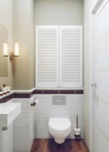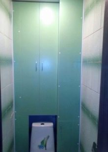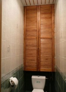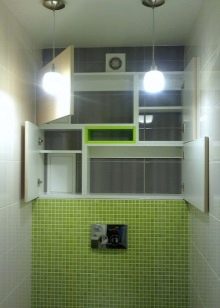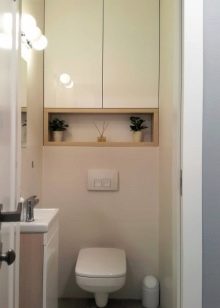 Нишата е удобна, защото мебелите не висят над тоалетната и ви позволяват да я използвате свободно. Но тесните условия на стаята могат да станат пречка за отварянето на вратите; тук трябва внимателно да обмислите начина за достъп до рафтовете. Ако традиционните люлеещи се врати не са възможни, можете да инсталирате плъзгаща се версия, система за повдигане на завесата или ролетни щори..