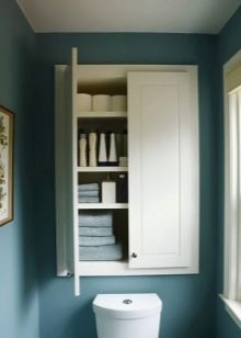 В ежедневието хората използват много неща, които не са предназначени за съхранение в жилищни помещения. Намирането на място за тях в тясно санитарно помещение не е лесно. За да направите това, използвайте ергономично пространството на малка тоалетна.. Място зад тоалетната може да бъде интелигентно решение за инсталиране на шкаф, чийто размер и външен вид ще определят възможностите на помещението и местоположението на водопровода..