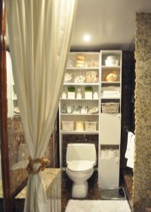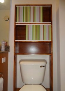 С голямо пространство можете купете готов гардероб за монтаж върху водопроводни инсталации, дори в комплект с подов комплект. Подреждането на рафтове за малка стая ще зависи от възможностите на мястото зад тоалетната във всеки отделен случай. Можете да се спрете на окачени или подови опции, но ако компактно пространство има голяма стойност, тогава вграденият тип структура ще ви помогне да го изхвърлите правилно..