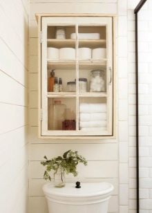 - Гардероб със затворена предна част идеално заема ниша над тоалетната.