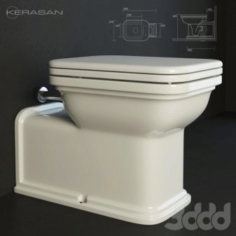 Търговско дружество KERASAN от поредицата Waldorf предлага овални приставки в ретро стил. Дренажният механизъм може да бъде определен с помощта на самата инсталационна система. Порцелановата структура ще подчертае дизайна на банята и ще работи безшумно.