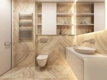 - Изберете материала за тоалетната. Най -често срещаните са санитарен фаянс и санитарен фаянс. Те не абсорбират влага и миризми, издръжливи.