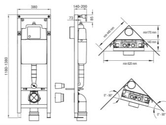 Също така, когато инсталирате ъглова инсталация, трябва да се има предвид, че казанчето ще има триъгълна форма.. Но тази форма ви позволява да намалите дълбочината на рамката. Средно тя ще бъде 13–20 cm.
