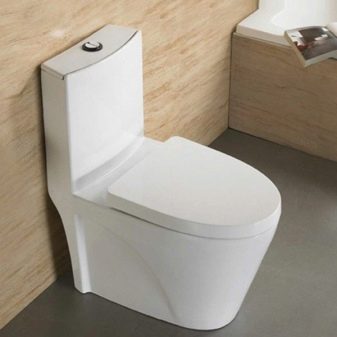 Тоалетните с моноблок се различават от компактните модели по принципа на всмукване и изпускане на вода. Тези устройства са поставени в корпус от една част.