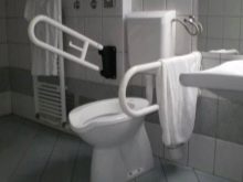 Тоалетна за инвалиди задължително оборудвани с парапети, позволяващи да се осигури достатъчно удобно използване на водопровод за човек с проблеми на опорно -двигателния апарат. Това може да бъде преносима стойка или разширение, както и постоянно фиксирана конструкция. Най -често говорим за постоянно използвани парапети в къщи, където инвалид живее самостоятелно, както и на обществени места..