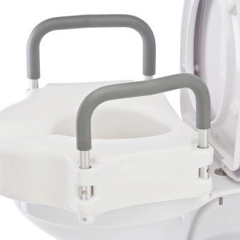 - Седалка за увеличаване на височината. Тази подложка няма парапети, тя се монтира директно отстрани на санитарния фаянс. Необходимо е да се регулира нивото, заменя обичайната седалка.