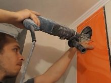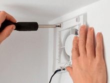 При фиксиране трябва да се даде предпочитание на течни нокти.. Тяхната сила е достатъчна, за да побере по -голямата част от моделите на вентилаторите. Въпреки че, разбира се, би било най -правилно да използвате инструкциите и да следвате стриктно инструкциите му. Така или иначе „Работният“ сегмент на устройството трябва да бъде напълно вдлъбнат в стената. Ще трябва да натиснете кутията много здраво, но внимателно..