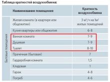 Всяка изпускателна система трябва да осигури изпомпването на поне 50 м3 въздух на 1 тоалетна. Когато използвате писоари, тази цифра се намалява наполовина. В тоалетните целият въздух трябва да се освежи за максимум 60 минути. Важно: подаването на свежи въздушни маси в самата баня не се извършва (в противен случай неприятните миризми и източници на опасност ще се разпространят в други зони). Ако площта на помещенията е по -малка от 109 кв. м и се използват не повече от 2 тоалетни, дори през зимата е достатъчна обичайната вентилация на апартамент или къща.