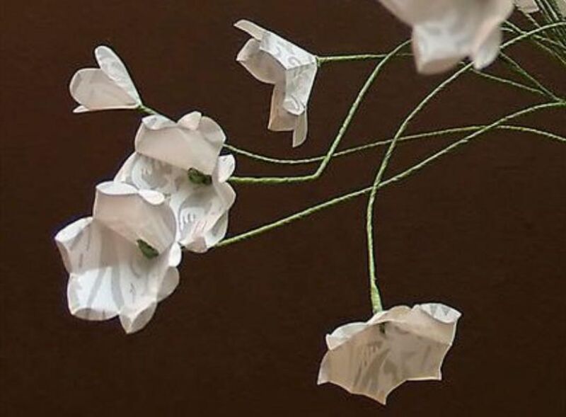 Táto origami konvalinka má šesť okvetných lístkov. Základnou technikou origami, ktorú sa musíte naučiť z tohto modelu, je základný záhyb okvetného lístka. Na prednú a zadnú stranu používa papier rovnakej farby..