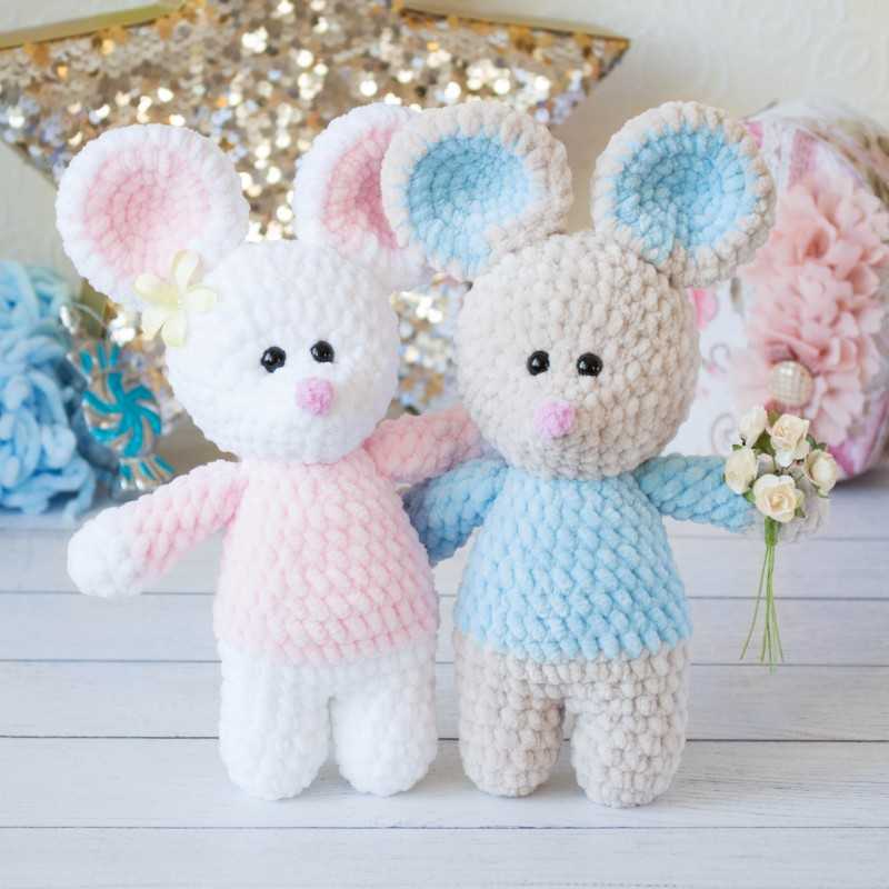 Myši sú väčšinou pletené zo sivej priadze. Môžete však použiť akúkoľvek farbu, ktorá sa vám páči. Hračka môže byť biela, čierna, hnedá alebo viacfarebná – všetko závisí od preferencií remeselníčky.