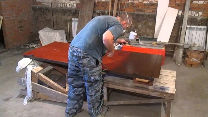 Необходимо е да се боядисва в определена последователност, започвайки от върха на конструкцията. На първо място, панелът е боядисан, след това хоризонталните повърхности и едва след това всички вертикални части. Необходимо е да се работи бързо, така че боята да няма време да изсъхне и да няма следи от четката. Всички манипулации трябва да се извършват внимателно, нанесете равномерен слой върху абсолютно суха повърхност.