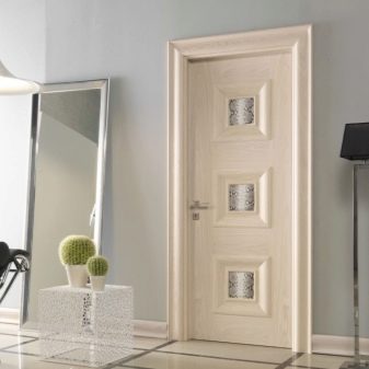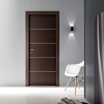 Също така, фурнир или MDF плоскости могат да се използват като покритие за повърхности на вратите. Такива структури са покрити с боя или петно на маслена основа..