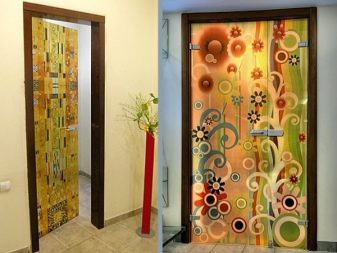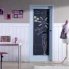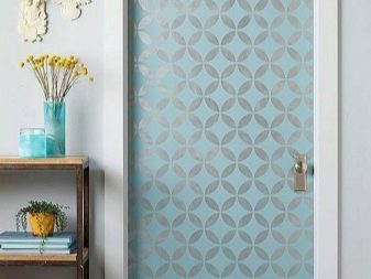 - Чрез боядисване на крилото на вратата. В този случай се нуждаете само от необходимото количество боя с определен цвят и текстура, шаблони, които значително ще опростят цялата процедура за боядисване на врати, както и материал, който може да се използва за затваряне на стените, за да не ги повредите по време на процес на боядисване. Най -популярният от този вид декорация е рисуването върху стъклена конструкция;