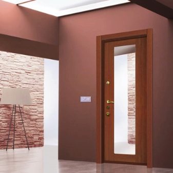 Съвсем лесно е да подредите правилно врата с вградено огледало. По правило това се прави с плочки, които скриват неравностите и дефектите от честа употреба. Плочката винаги изглежда благородна и ви позволява да придадете на вратата модерен вид. В допълнение, огромното разнообразие от негови видове ви позволява да създавате най -непредсказуемите композиции. Плочките могат да се монтират като цяло или като се използват отделни части, придавайки на вратата по -модерен и автентичен вид.