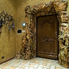 - полагане на различни видове камък по периметъра на вратата или върху цялото й пространство – в този случай трябва да се има предвид, че използваните камъни не трябва да бъдат много тежки, в противен случай има вероятност с течение на времето те да деформират вратата и едва ли ще се прилепи към повърхността му.