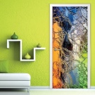 - Прилагане на винилови стикери. Пълните комплекти се продават в специализирани търговски центрове, където можете да изберете точно това, което е най -подходящо за интериора на стаята. Дизайнът може да бъде различен – вратата може да бъде декорирана по такъв начин, че да изглежда като дърво, тухла и други материали;