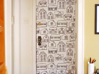 Възможно е също така да завършите повърхността с тапет – това е най -простият и най -често срещаният начин, който ви позволява да направите вратите по -привлекателни.