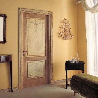 Дървените врати често са залепени с различни материали, които могат да придадат модерен вид. Често за тези цели се използва такава техника като декупаж, като предварително са подготвени всички необходими материали: салфетки, които служат като основен материал, PVA лепило, четка, с която лепилото ще се нанася върху вратата и салфетка, лак, който ще служи като допълнителен материал, който фиксира салфетките върху повърхността на вратата.