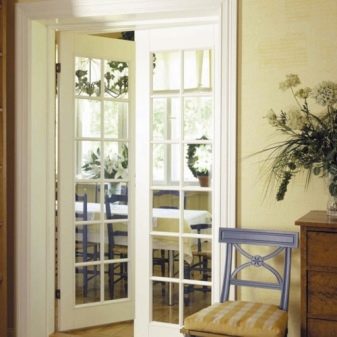В малки помещения е по -изгодно да се монтират конструкции на врати от светли цветове или със стъклени вложки..