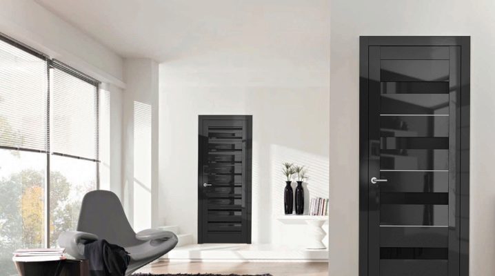 Черните врати се вписват добре в модерния стил на стаите, хай-тек, модерен. Тази опция придава известна изтънченост и се фокусира върху яснотата на линиите. Гланцът изглежда страхотно в стая с обикновен тапет. Можете да опитате изискана черно -бяла опция за дизайн с врати в контрастен цвят..