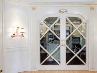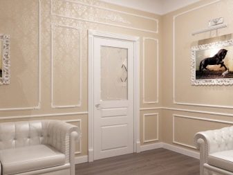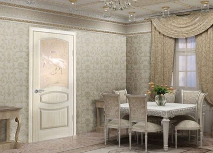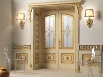 - В допълнение към крепежните елементи, дизайнът на интериорна врата може да съдържа различни видове фитинги, повечето от които са декоративни. Например вратите с корнизи са много популярни. Това е специфично декоративно парче, което прилича на изпъкнало покритие. Формоването включва такива изящни елементи като багети, панели, необичайни бордюри, решетки и мазилки. Всички тези неща служат като детайли за декорацията на стаята и като правило се използват за помещения, направени в класически стилове..