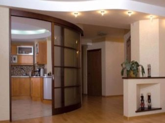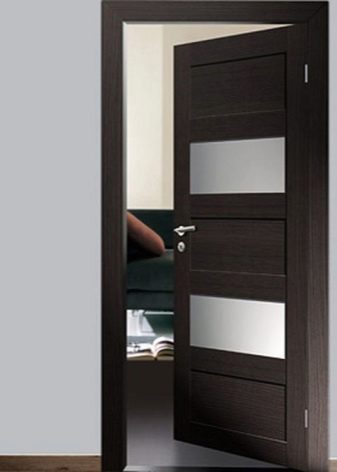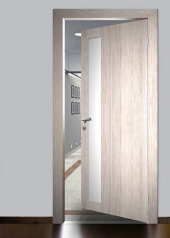- Конструкциите на люлеещите се врати могат да имат едно или две крила. По правило те се монтират в големи помещения и се отварят в стаята. Съответно, за отваряне на вратата е необходимо определено пространство, което може да не е налично в малките апартаменти. Следователно за собствениците на малки апартаменти те ще изглеждат неудобни, тъй като те ще заемат много място. И това затруднява много собствениците при подреждането на мебели..
