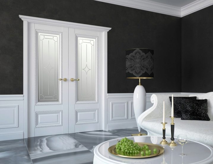 Вратата може да бъде и с матирано стъкло или зърнесто велпапе, с голямо стъкло или с остъкляване в средата. Двойните врати със стъклопакет, имитиращи прозорец, се считат за много популярни за класически интериор. Този дизайн изглежда много аристократичен и скъп, особено ако рамката му е направена в бял нюанс..