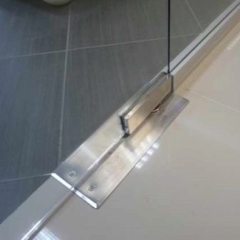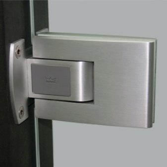 - Ако крилото на вратата е изцяло от стъкло, тогава е необходимо да изберете панти, които не включват пробиване на крилата. По правило такива панти се държат от конструкцията поради факта, че са много плътно притиснати към крилата на стъклената врата от двете страни. Доверявайки се на тези панти, можете да сте абсолютно сигурни, че вратата е здраво закрепена..