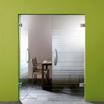 Друг плюс е огромното разнообразие в избора на стъкло. Всъщност на пазара на стъклени врати можете отделно да изберете опция за себе си, която е идеална за всеки материал на рамката на вратите. Тя може да бъде обикновено прозрачно стъкло или с допълнителен модел..