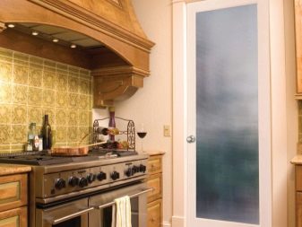 Вратите с матови вложки не са подходящи за кухни. Това е така, защото в сравнение с други стаи в къщата, кухнята се замърсява много бързо. Капки мазни мазнини, парчета храна или дори обикновена вода могат да паднат върху вратата по време на готвене. Доста е трудно да се премахнат такива петна от матирано стъкло, без да се разваля повърхността. Освен това не всички препарати могат да се използват за почистване на матови повърхности. За повечето домакини това е доста непрактично..