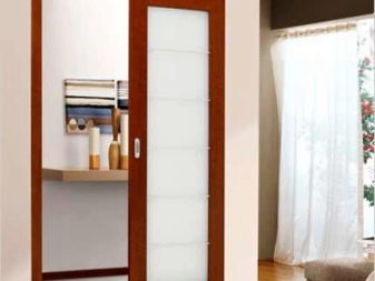 - Популярни плъзгащи се врати, поради липсата на люлеещи се конструкции. Поради дизайна си, оборудван със специални ролки, при отваряне на вратата листата й се плъзгат в страничните прорези на стената. Много удобен дизайн за малки апартаменти, където всеки сантиметър има значение.