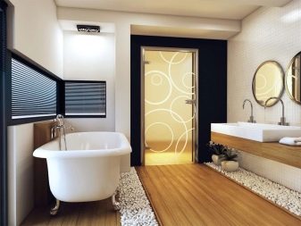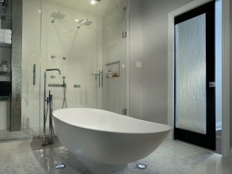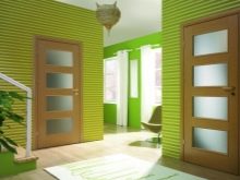 - Вратите със стъкло визуално увеличават пространството, правят го светло. Стъклото може да бъде всяко: тъмно, светло, лъскаво, матово и се различава по степента на прозрачност. Тя може да се слее – обемни елементи или шарка, шарка.